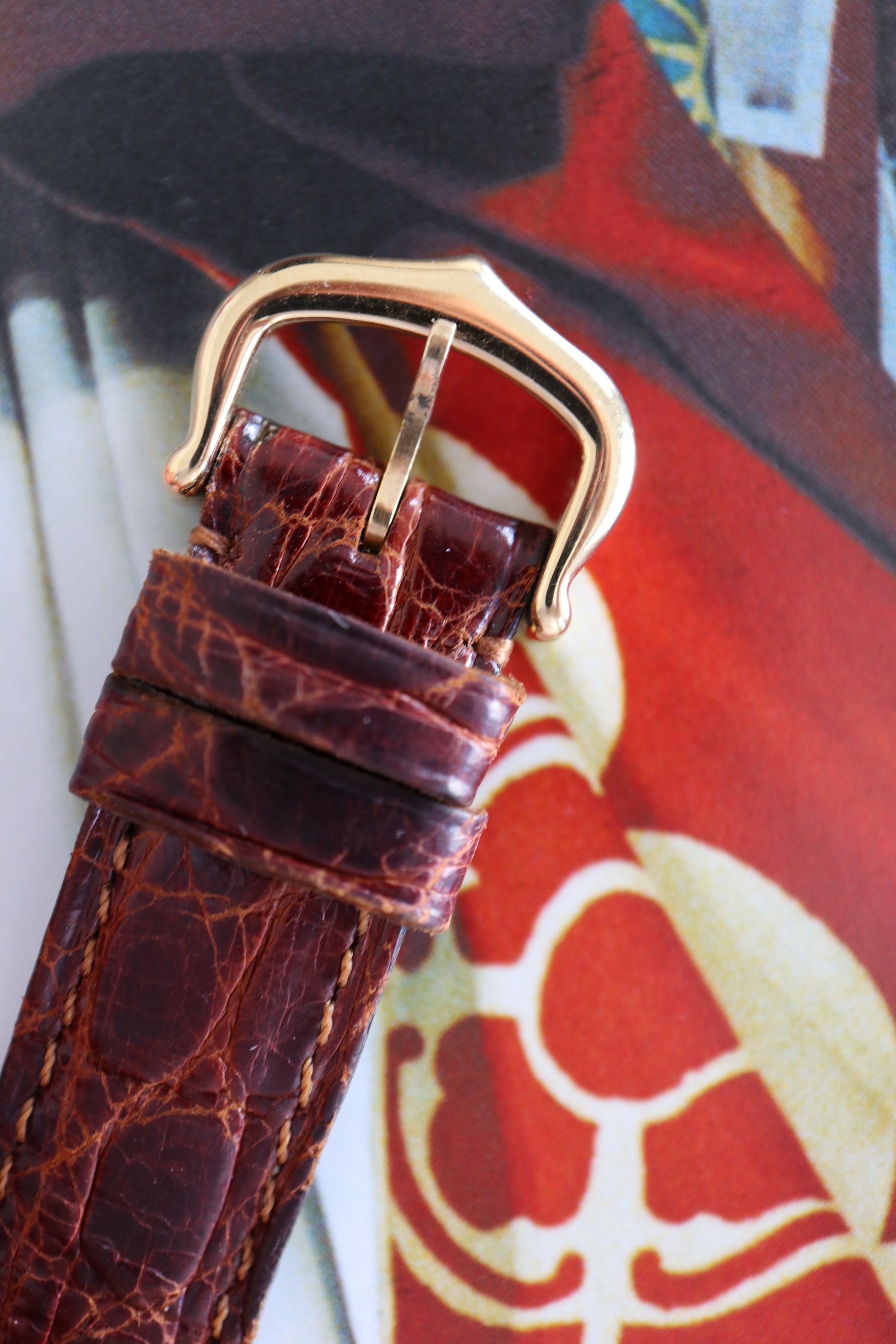 - Strap: Genuine Cartier leather strap (croc pattern) with Cartier gold-plated buckle