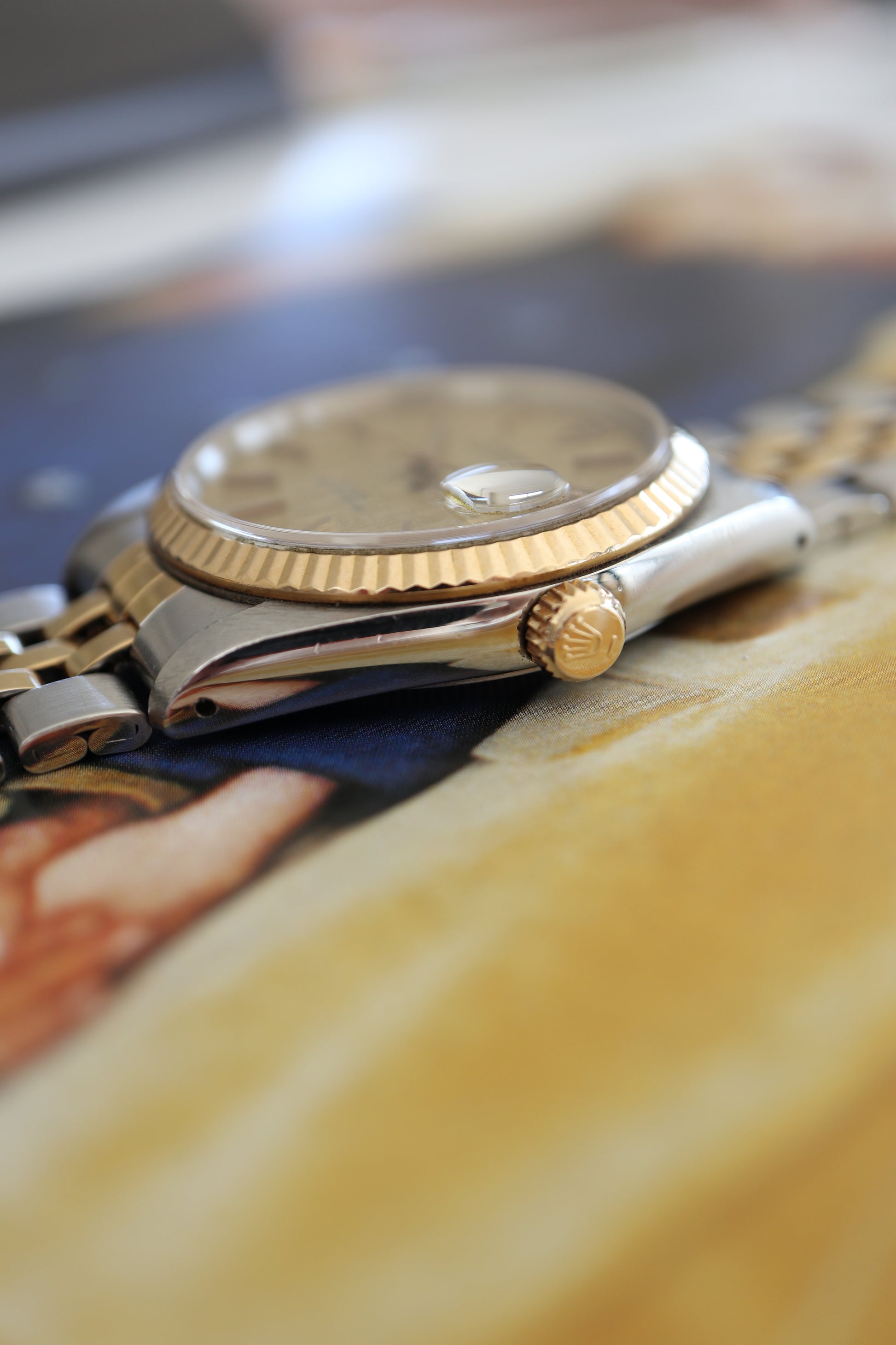 Very good vintage condition. The case retains sharp lines with light marks near the lugs, while the fluted bezel remains crisp. Bracelet shows mild stretch and gentle rubbing to a few gold centre links, consistent with wear, and has been ultrasonically cleaned for presentation. The linen dial has aged to a soft, even warmth with clear printing and clean hands.